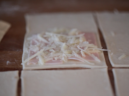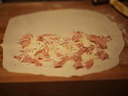 Am preparat placintele in doua moduri (pachetele si rulate) si am ales doua umpluturi simple (mortadella/sunca+cascaval si spanac cu branza), desi orice umplutura merge (cartofi, varza calita, carne tocata preparata etc.), doar sa distribuiti umplutura in strat subtire, mai ales la cele rulate.