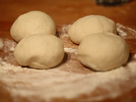 - daca veti face placinte subtiri, taiati aluatul in 4 bucati egale si dati-le forma rotunda.