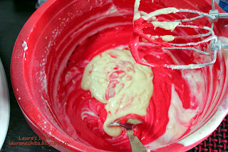 Compozitia obtinuta o impartim in doua. Intr-una din compozitii adaugam foarte putin colorant rosu si amestecam bine.